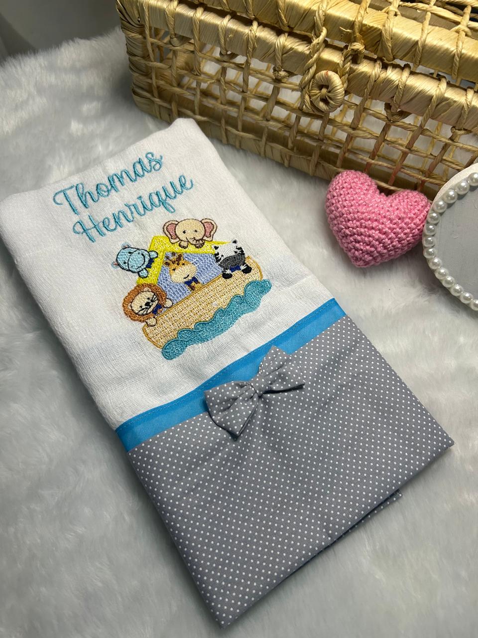 Personalizada com o nome do bebê em bordado eletrônico, é perfeita para passeios, momentos especiais ou para presentear com muito carinho.